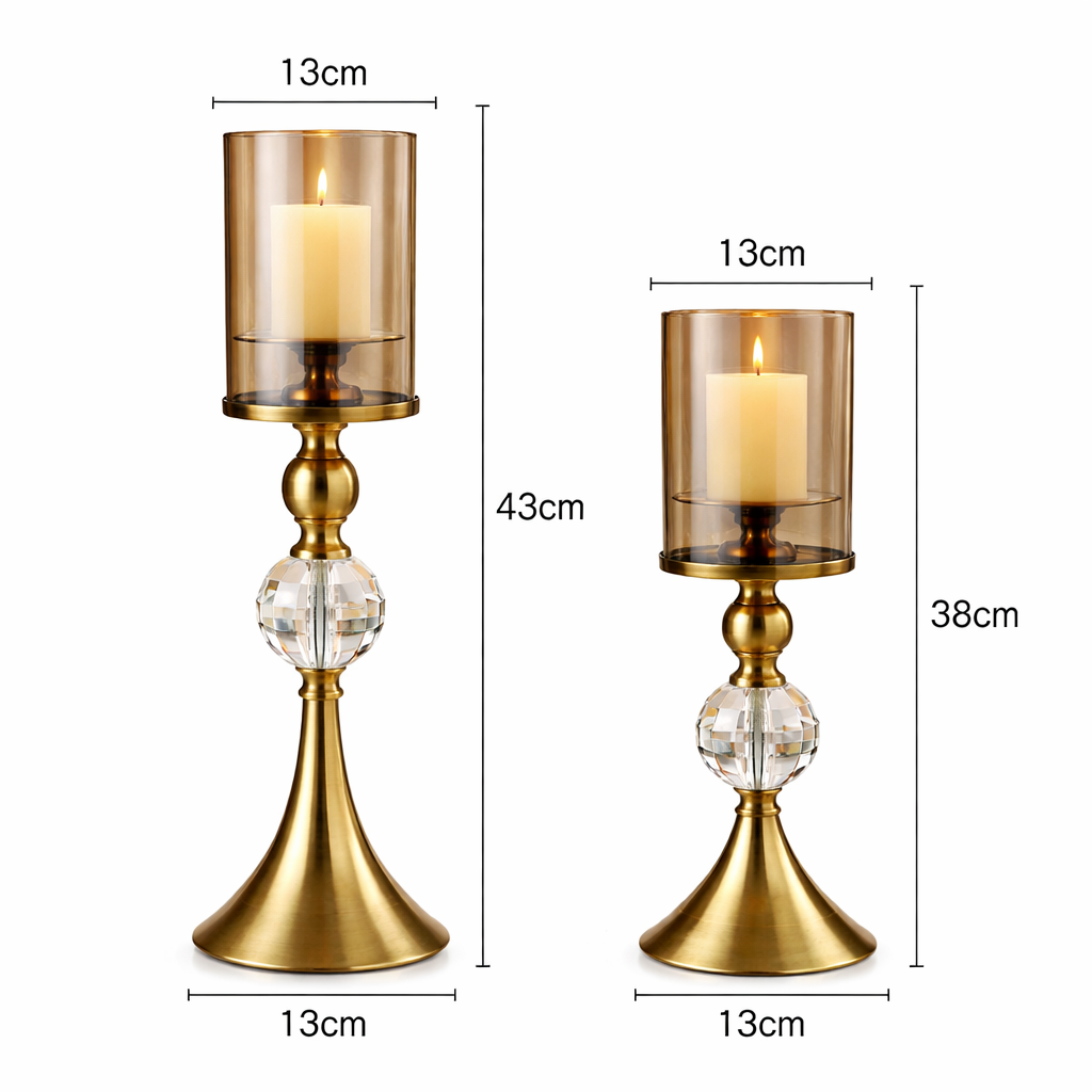 Luxury Crystal & Brass Candle Holder Set
