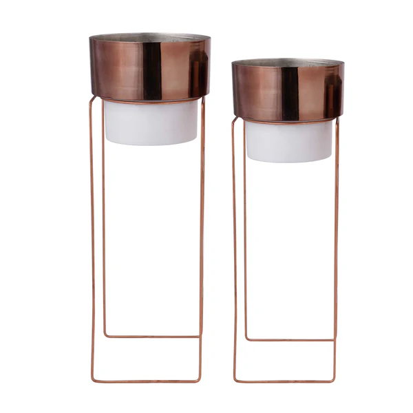 Bring refined elegance to your plant styling with the Evelyn Rose Gold & White Planters Set of 2. Designed to complement both modern and classic interiors, this planter set combines soft white tones with a warm rose gold finish for a look that feels fresh, balanced, and stylish.