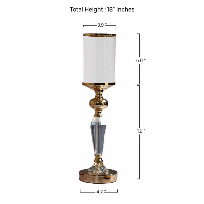 Add warmth and refined elegance to your décor with the Fulgor Gold Crystal Candle Holder Set of 2. Designed to create a soft, ambient glow, this beautiful set combines antique gold finished metal with clear crystal detailing and a glass hurricane top for a balanced and luxurious look.
