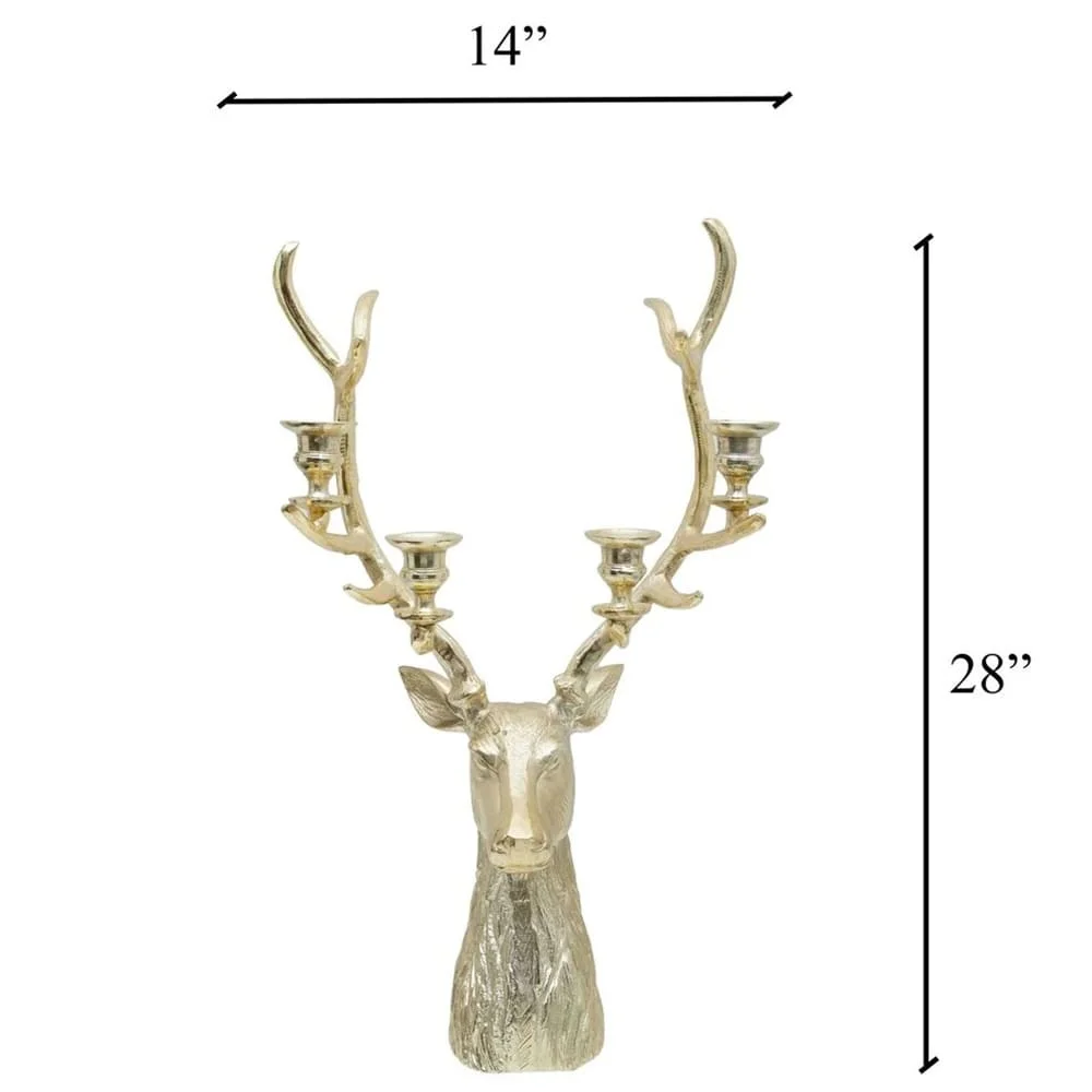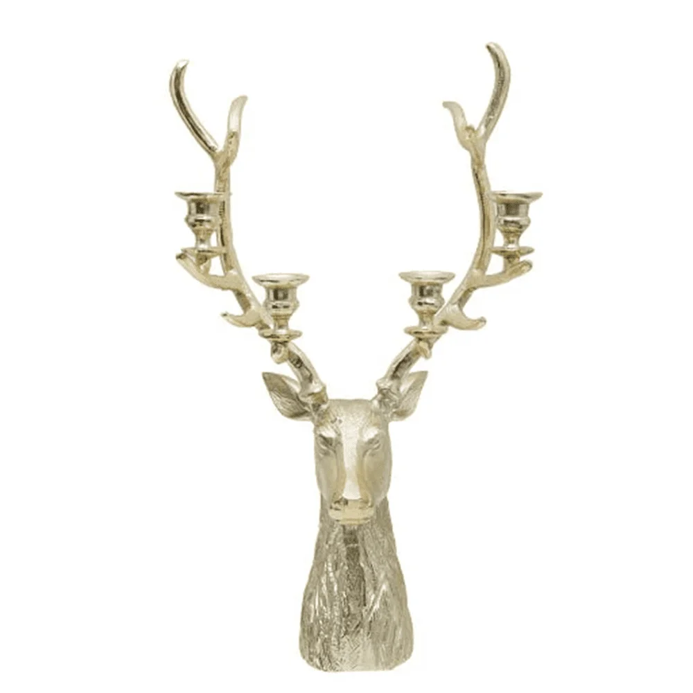 Experience the beauty and elegance of our Hazel Gold Stag Candle Holder. This majestic masterpiece is a superb piece of artwork, exuding luxury and sophistication. Add a touch of opulence to any space with its intricate design and rich golden hues. Truly a must-have for those with a discerning taste.