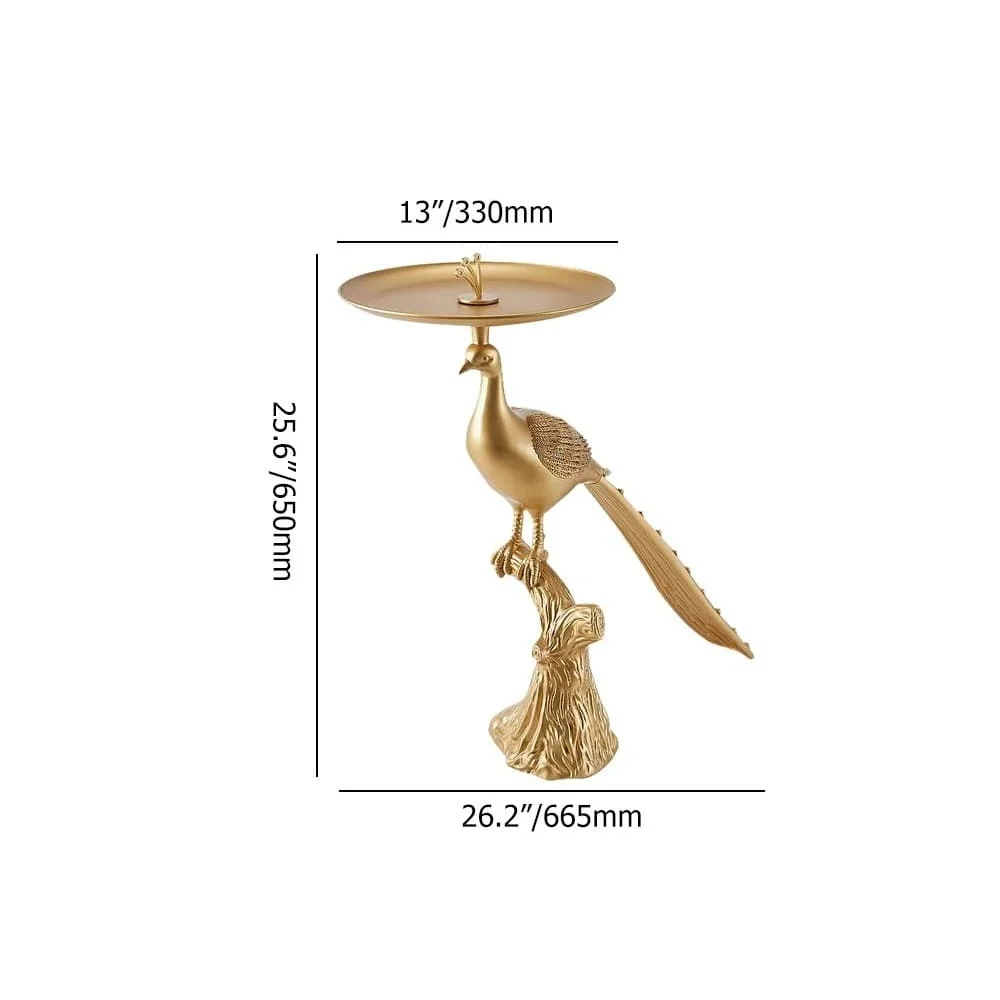 Peacock Figurine Art Deco Gold Side Table with Tray Top